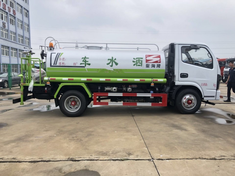 灑水車性能簡介:吸程≧7米,灑水寬度≧14-16米,射程≧25-40米,引水時間<5min,流量60m3/h。前沖(噴)、后灑、帶側噴(花灑)、帶后工作平臺、平臺上安裝綠化灑水高炮(炮噴射形狀可調節:直沖、大雨、中雨、毛毛雨、霧狀、可連續調節,360°旋轉),配消防接口,自流閥,濾網,帶自吸自排功能。