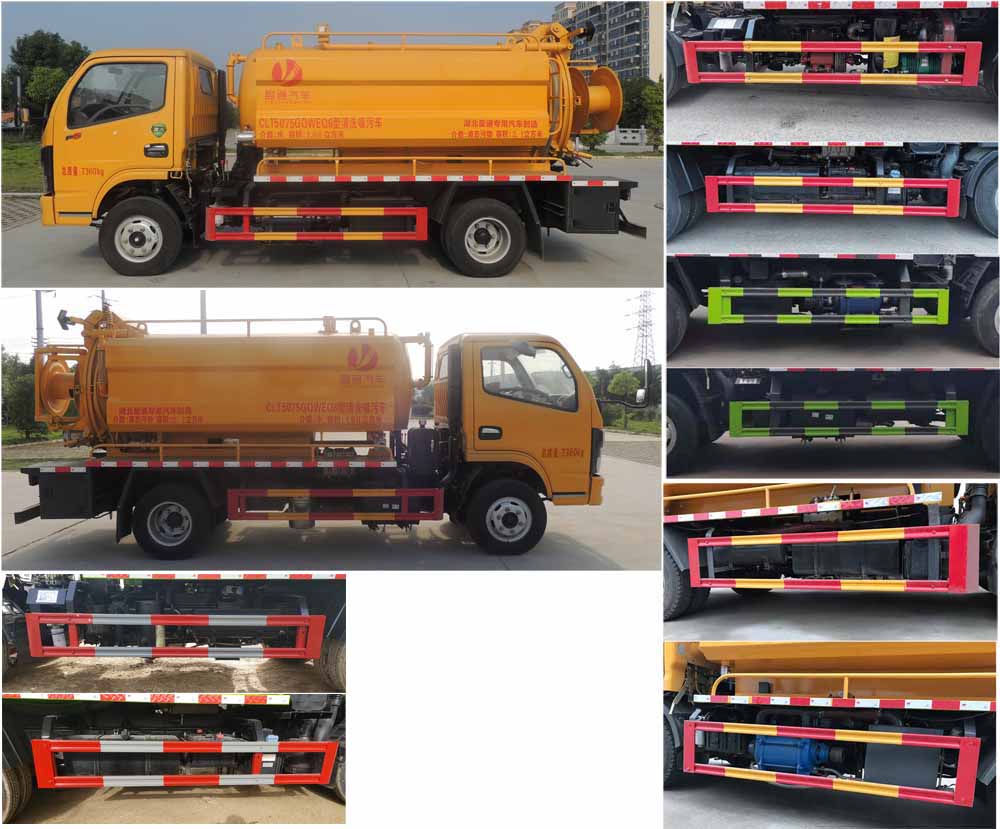 | 備注 | 5方清洗吸污車-5方管道搜通車該車用于下水道排污及疏通,專用裝置:罐體及清洗吸污裝置;罐體外形尺寸(直段長×直徑)(mm):3100×1300(前部1300mm為清水罐,后部1800mm為污水罐);污水罐總容量:2.1立方米,污水罐有效容積:2.0立方米,介質:液態污物,密度800千克/立方米;清水罐總容量:1.68立方米,清水罐有效容積:1.6立方米,介質:水,密度1000千克/立方米,清水罐和污水罐為獨立罐體,清洗功能時用清水罐,吸污功能時用污水罐,污水罐和清水罐不可同時滿載;ABS型號/廠家:ABS/ASR-12V-4S/4M/襄陽東風隆誠機械有限責任公司;卸料方式為舉升后卸式;側、后防護材料均為:Q235碳鋼,連接方式均為:螺栓連接,后部防護截面尺寸(mm):120×50,后部防護離地高度(mm):370.隨底盤選裝駕駛室,選裝底盤附件安裝位置.選裝燃油箱,電瓶,尿素罐,儲氣筒左右安裝位置 | ||