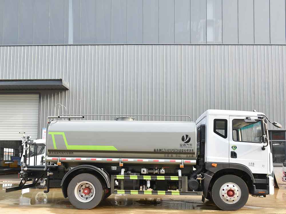 12方灑水車上裝配置: 1、罐體約為 12 方, 2、邊燈帶電,罐體尾部上方標配 2 個紅色示寬燈, 3、標配前噴為鴨嘴直沖,標配后沖,用戶可根據自己的需求,來調 整對沖位置。 4、沖孔平臺(承載能力加強),炮筒后蓋為定制型螺栓卡扣, 5、前噴、后沖、后灑、側噴,綠化高炮開關球閥均采用 50 大通經 不銹鋼球閥, 6、新式軸承式水炮,更加耐用, 7、60-90 型水泵, 8、防腐法蘭墊片, 9、鋁制后灑,不易炸開 10、罐體自動焊(美國林肯焊機及電源),拼板自動焊接,封頭環 縫焊接,無氣孔,焊縫美觀。 11、側護網、后保險杠、均為螺栓連接,方便拆卸,維修方便。 12、塑料擋泥板,替代鐵擋泥板,更加輕便,用螺栓連接,方便拆 卸