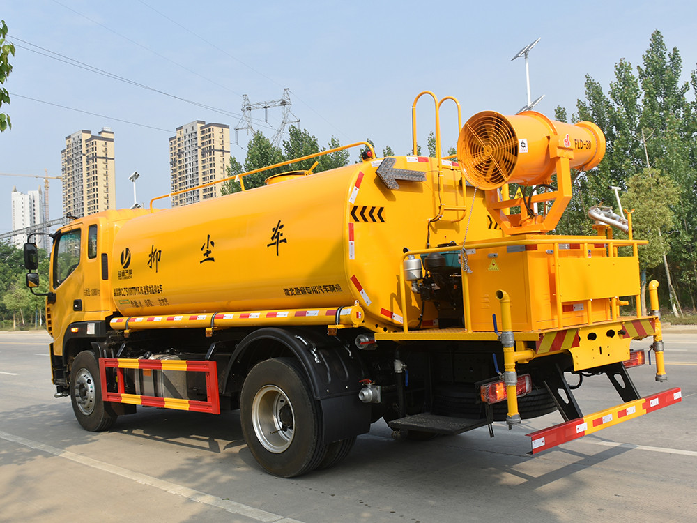 12 方奧鈴大黃蜂抑塵車,灑水車產品配置 1.底盤配置: 發動機玉柴 200 馬力(四缸),法士特 8 檔變速箱,加強型 8T 后橋,10.00 鋼絲胎,軸距 3950,原廠空調,原廠取力器,電動玻璃, 中控鎖,斷氣剎2.上裝配置: 1、罐體約為 12 方,可加裝 30-40 型霧炮 2、邊燈帶電,罐體尾部上方標配 2 個紅色示寬燈, 3、標配前噴為鴨嘴直沖,標配后沖,用戶可根據自己的需求,來調 整對沖位置。 4、花紋防滑平臺,炮筒后蓋為定制型螺栓卡扣, 5、前噴、后沖、后灑、側噴,綠化高炮開關球閥均采用 50 大通經 不銹鋼球閥, 6、新式軸承式水炮,更加耐用, 7、60-90 型水泵, 8、防腐法蘭墊片, 9、鋁制后灑,不易炸開 10、罐體自動焊(美國林肯焊機及電源),拼板自動焊接,封頭環 縫焊接,無氣孔,焊縫美觀。 11、側護網、后保險杠、均為螺栓連接,方便拆卸,維修方便。 12、塑料擋泥板,替代鐵擋泥板,更加輕便,用螺栓連接,方便拆 卸。 13、前部、后部主管連接處為 6 孔圓法蘭,不易沖墊