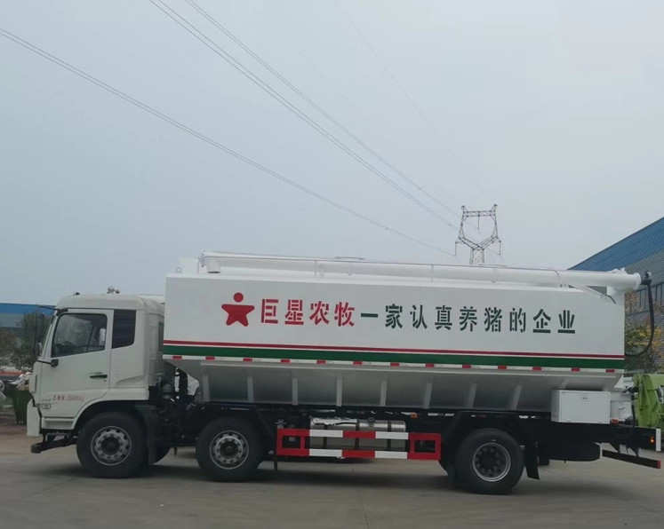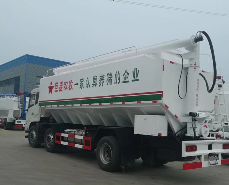 國六東風天錦小三軸散裝飼料運輸車-30方散裝飼料車:東風天錦VR駕駛室,康明斯245馬力發(fā)動機,法士特8檔變速箱,1800+5000mm/1800+4100mm軸距,11.00R20鋼絲胎,電動門窗,中控鎖,原廠空調,ABS,方向助力,鋁合金擋泥板,帶環(huán)保和燃油,上戶辦營運證無憂!上裝采用武鋼優(yōu)質碳鋼板,三條絞龍,頂部絞龍可180度旋轉,分設四個倉,可獨立控制各個倉的卸料順序和速度!