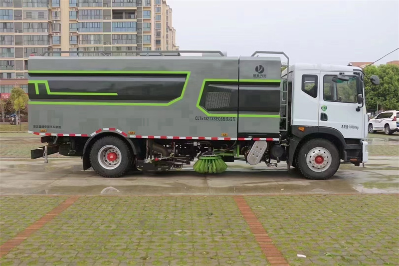 2、采用“中置兩立掃+中置寬吸嘴(內(nèi)置高壓水噴桿)+左右高壓例噴桿”的結(jié)構(gòu)。構(gòu)的啟動與關(guān)停由程序自動控制,具有全洗掃作業(yè)、左洗掃作業(yè)、右洗掃作業(yè)、全掃路作業(yè)、左掃路作業(yè)、