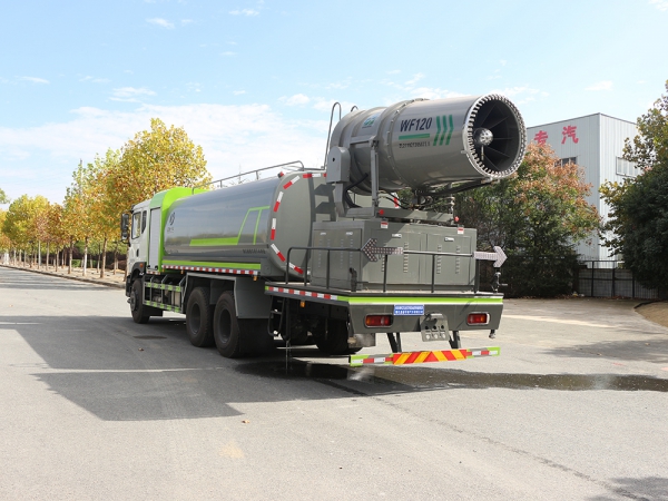 東風(fēng)大型灑水車-抑塵車上裝配置: 1、罐體約為 17 方,可加裝 60-120 型霧炮 2、邊燈帶電,罐體尾部上方標(biāo)配 2 個紅色示寬燈, 3、標(biāo)配前噴為鴨嘴直沖,標(biāo)配后沖,用戶可根據(jù)自己的需求,來調(diào) 整對沖位置。