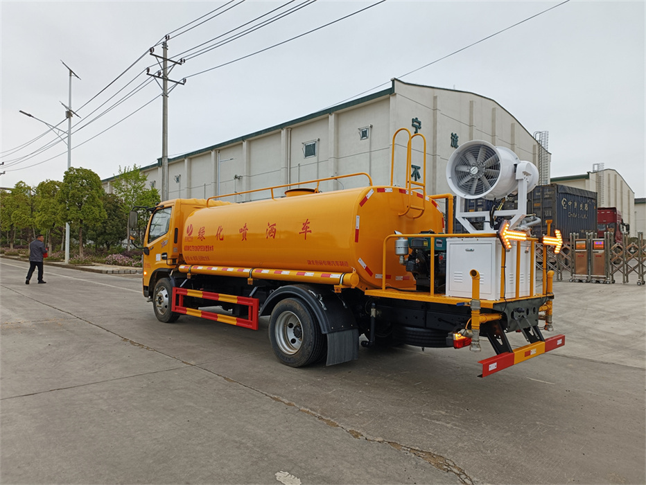 公司灑水車產品標配前噴(鴨嘴)、后沖、后灑、側噴、后置式工作 平臺,平臺上配置綠化水炮(可 360°旋轉,既可以調成柱狀,也可 以調成霧狀,更可以調成直沖狀、大雨、中雨、小雨、毛毛雨),配 備優質大功率專用灑水泵(可自吸自排,可從河里或池塘抽水到罐體), 取力器,雜物過濾網,消防接口,自流球閥系統、取力器、球閥、濾網 均為國家標準產品,主管道加粗,法蘭墊、法蘭盤加厚,大通徑球閥。 整體具備性能優良安全可靠、效率高、流量大、維修方便等特點