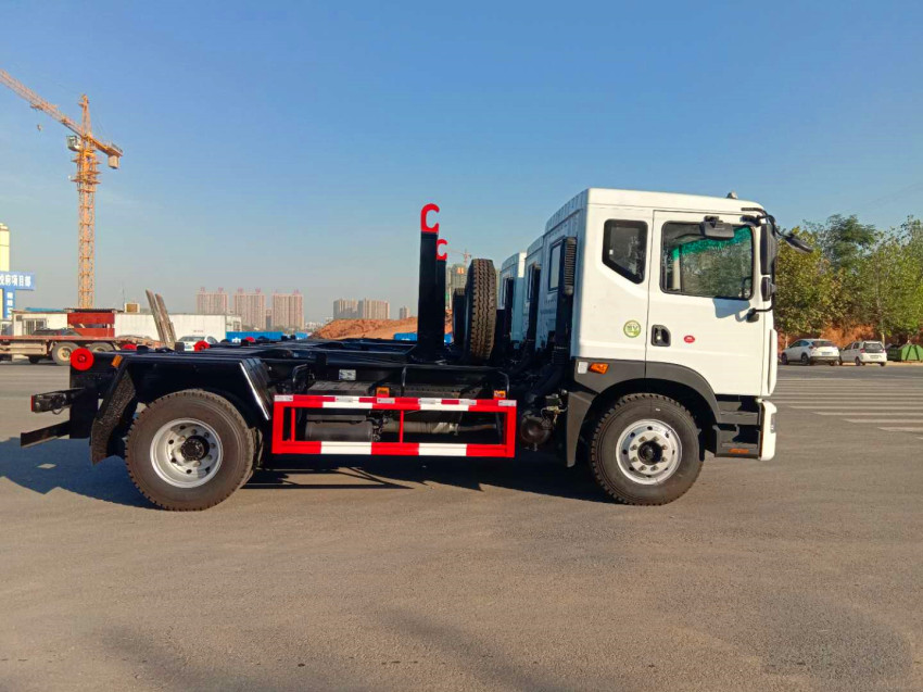勾臂式垃圾車即車廂可卸式垃圾車、拉臂式垃圾車。該車廣泛適用與城市街道學(xué)校垃圾處理,可一車配備多個斗,各個垃圾點(diǎn)放置多個垃圾斗,帶自卸功能,液壓操作,方便傾倒。該車的箱體部分完全由液壓系統(tǒng)來控制,在平日里可將車載垃圾箱放置到各個垃圾收集站,待垃圾收集滿后,該車可直接開赴至垃圾站,通過液壓系統(tǒng)的操控,可將垃圾車后座上加裝的勾臂放下,掛住站內(nèi)垃圾箱前端的連接點(diǎn),將垃圾箱拉至車體的后座上,此時(shí)即可啟動車輛,將垃圾運(yùn)送至垃圾處理站內(nèi),進(jìn)行自卸式傾倒。該車最主要的優(yōu)點(diǎn)就是可一車配多斗,一輛車就可以維持?jǐn)?shù)個垃圾收集站的運(yùn)轉(zhuǎn),效率高,且箱體為密封式設(shè)計(jì),不會造成二次污染。