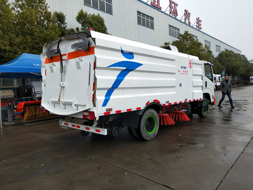1、掃路車采用吸掃結(jié)合的方式收集垃圾,濕式除塵、電液控制,液壓傾翻卸料的作業(yè)方式對路面進(jìn)行清掃作業(yè)。