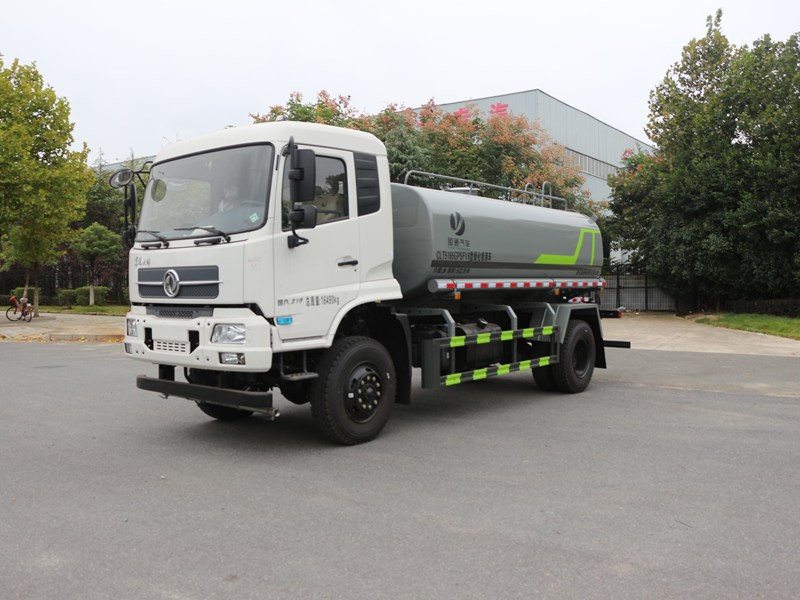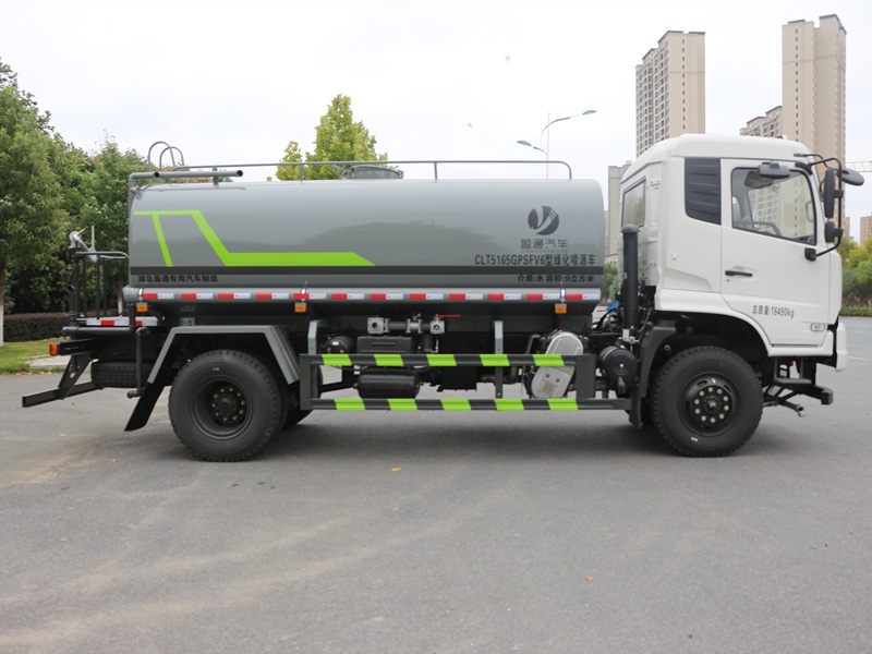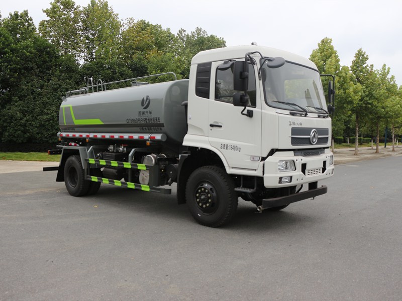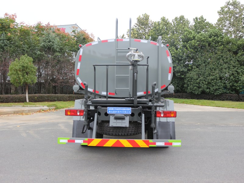 東風天錦4驅灑水車專用功能配置:罐體實際容積約為11立方米,(罐體有效參數9立方米、額定載質量8575kg、)采用武鋼優質碳鋼板卷壓成型。配備專用灑水泵,自吸自排,前噴后灑、側噴、后工作平臺及灑水高壓炮。灑水泵自吸高度為6米左右,整車灑水寬度14米左右,后工作平臺水炮可調成:直沖狀、大雨、中雨、小雨、毛毛雨,有效射程≥28米,整車帶接頭、水位計,自流閥。后工作平臺主管路帶1寸澆花接口,附送2根3米水管,1個爬梯,兩側及后保險杠。