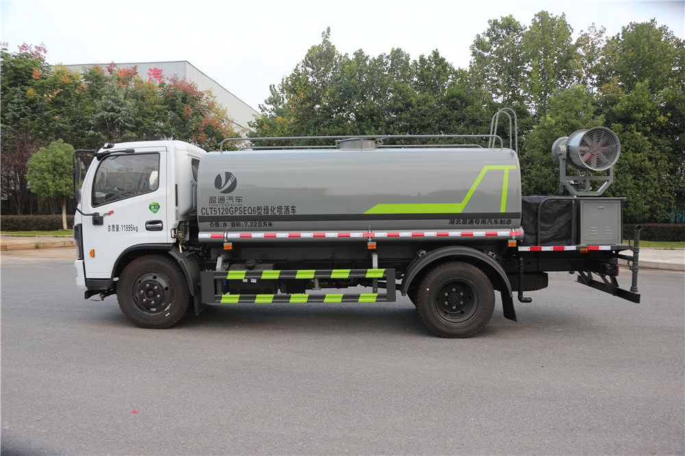 東風福瑞卡綠化噴灑車-9噸綠化灑水車報價-綠化灑水車生產廠家專用功能配置:罐體實際容積約為9立方米,采用武鋼優質碳鋼板卷壓成型。配備專用灑水泵,自吸自排,前噴后灑、側噴、后工作平臺及灑水高壓炮。灑水泵自吸高度為6米左右,整車灑水寬度14米左右,后工作平臺水炮可調成:直沖狀、大雨、中雨、小雨、毛毛雨,有效射程≥28米,整車帶接頭、水位計,自流閥。后工作平臺主管道有一個一寸的澆花接口,附送23米水管,1個爬梯,兩側及后保險杠。