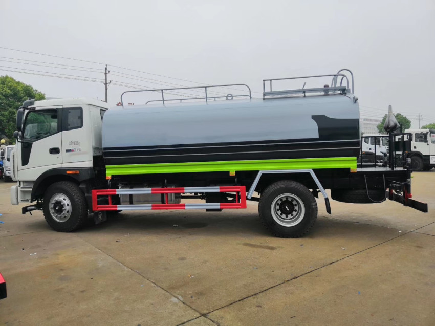 福田瑞沃灑水車15噸灑水車改裝配置:罐體用4MM碳鋼板制作,罐內(nèi)隔板具有防波作用,以減低汽車行駛時罐體液體的沖擊。整車帶一個專用灑水泵(垂直最大吸程6米),灑水寬度 14米,射程28米。多功能灑水車配備2個前沖(噴)(能將路面泥巴、塵土、垃圾沖干凈);2個后灑(能均勻地將水灑在路面,一次灑水寬度14米)、2個側(cè)噴 (花灑)(能均勻地將路旁綠化帶澆灌)、帶1個后工作平臺,平臺上安裝1個綠化灑水高炮(灑水炮可全方位旋轉(zhuǎn),可連續(xù)調(diào)成直沖狀、大雨、小雨、毛毛 雨,霧狀可調(diào)節(jié)沖洗高大樹木),引水時間<5min,流量90m3/h。帶1個消防接頭,帶1個自流閥,1個過濾裝置、人性化爬梯及側(cè)防護欄,安裝灑水音樂喇 叭。