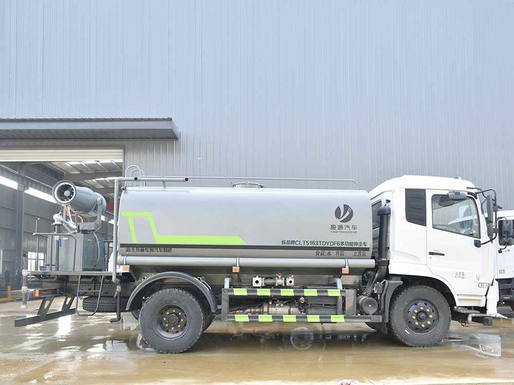 東風天錦 12 方抑塵車-灑水車產品主要技術參數 序號 名稱 型號、規格 1 整車型號 CLT5180TDYDF6 型多功能抑塵車 2 發動機型號 B6.2NS6B210 3 發動機馬力/功率 康明斯 210 馬力/154KW 4 發動機排量 6200ML 5 變速箱 東風 6 檔 6 輪胎規格 10.00 鋼絲胎 7 軸距 4700 8 總質量 18000KG 9 整備質量 8000KG 10 額定載質量 9805KG 11 整車尺寸(長×寬×高) 8.6*2.5*3.2 12 罐體容積 12 方 13 燃料種類 柴油 14 排放標準 國六 15 水泵型號 60/90 16 罐體材質 Q235 碳鋼