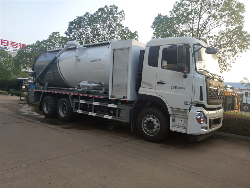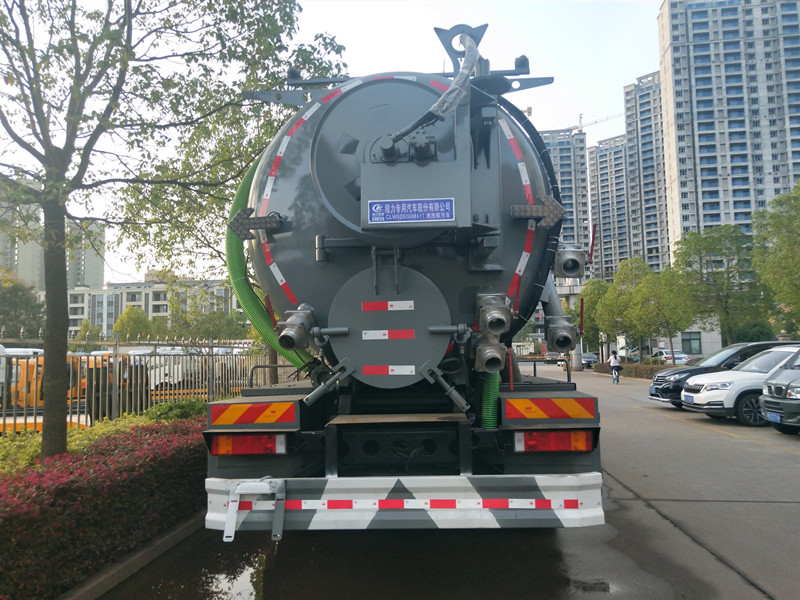 由于吸糞膠管始終浸沒于液面上,糞罐內的空氣被抽吸后,因其得不到補充而越來越稀薄,致使罐內壓力低于大氣壓力,糞液即在大氣壓力使用下,經吸糞膠管進入容罐。或者由于虹吸管接近罐底,空氣被不斷排入糞罐時,因其沒有出路而被壓縮,致使罐內壓力高于大氣壓力,糞液即在壓縮空氣的作用下,經虹吸管,吸糞膠管排出罐外。吸污車主要用于清洗城市下水道,管道的沉積物,死角泥溝的疏通,也可用于清洗工業排液管道,壁面等,并可兼作灑水,運水和沖公路用,緊急時可用于救火。