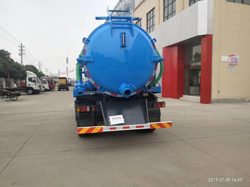 | 備注 | 福田8噸吸污車該車用途為吸污,主要裝置為污罐;罐體有效容積:7.28立方米,運輸品名:液態污物,罐體尺寸(mm): 直段長4100,直徑1500;防護材料:Q235A碳鋼 ,連接方式:左右側面及后下部防護均采用焊接連接,后部防護斷面尺寸(mm):150×50,后部防護離地高度(mm):480. 整車長/軸距對應關系為(mm):6950/3800,7350/4200;ABS控制方式為4S/4M,ABS型號為CM4XL-4S/4M, 生產廠家為廣州瑞立科密汽車電子股份有限公司;選裝車輛后部圖片. | ||