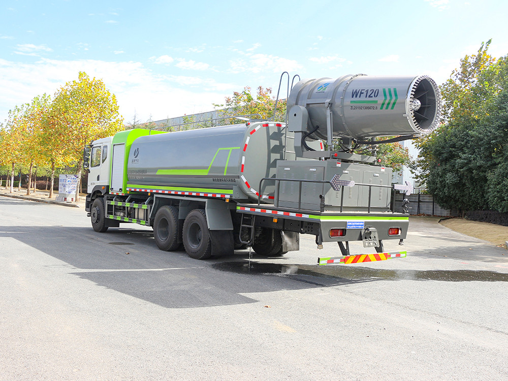 東風(fēng)華神 大型17方抑塵車-霧炮車產(chǎn)品介紹簡述 抑塵車又稱為綠化噴灑車、多功能灑水車、園林綠化灑水車。抑 塵車適合于各種路面沖洗,樹木、綠化帶、草坪綠化,道路、廠礦企業(yè) 施工建設(shè),高空建筑沖洗。抑塵也可以作為運(yùn)水車使用,最常見的車 型有綠化噴灑車、多功能灑水車、綠化灑水車幾大類。 我公司產(chǎn)品標(biāo)配前噴(鴨嘴)、后沖、后灑、側(cè)噴、后置式工作 平臺,平臺上配置綠化水炮(可 360°旋轉(zhuǎn),既可以調(diào)成柱狀,也可 以調(diào)成霧狀,更可以調(diào)成直沖狀、大雨、中雨、小雨、毛毛雨),配 備優(yōu)質(zhì)大功率專用灑水泵(可自吸自排,可從河里或池塘抽水到罐體), 取力器,雜物過濾網(wǎng),消防接口,自流球閥系統(tǒng)、取力器、球閥、濾網(wǎng) 均為國家標(biāo)準(zhǔn)產(chǎn)品,主管道加粗,法蘭墊、法蘭盤加厚,大通徑球閥。 整體具備性能優(yōu)良安全可靠、效率高、流量大、維修方便等特點(diǎn)。