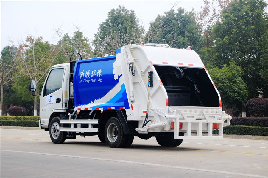 凱馬3方壓縮式垃圾車具有垃圾收集方式簡便、高效、具有反復壓縮及蠕動壓縮等功能特點,壓縮比高,裝載質量大,作業自動化,動力性、環保性好,整車利用效率高。高密度液壓油管,帶污水箱,帶翻轉架可掛240L塑料垃圾桶。