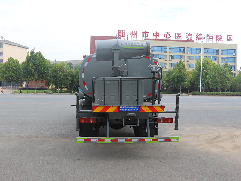 標準配置灑水車主要裝備有:前沖(沖洗公路路面)、后灑(公路路面養護)、側噴、高位側花灑(路邊綠化帶優化);后工作平臺高壓水炮,可調節成柱狀,射程≥28m;也可調節成霧狀,射程≥30米,水泵自吸高度:≤7m,灑水寬度:≥15m。側防護網,自流閥,消防接頭。灑水車水泵為常壓水泵,功能可以抽水、排水。另外根據用戶要求,可加消防泵、噴霧機、農藥卷盤、農藥柱塞泵。罐內可以做防腐防銹、電磁閥氣動閥自動放水等****,以滿足不同用戶需求。