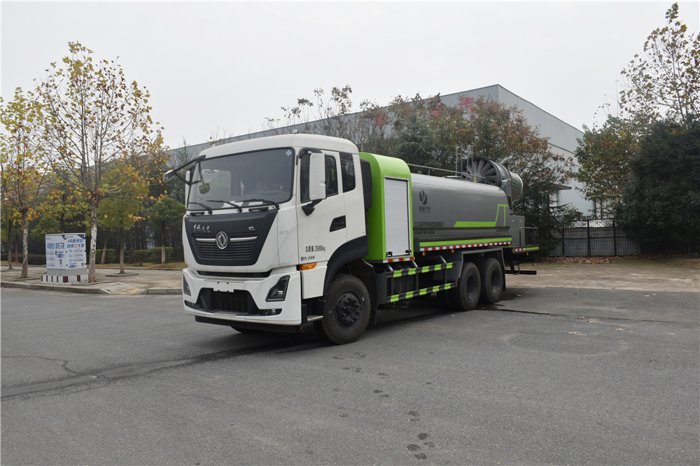 多功能抑塵車 產品主要技術資料 產品名稱: 多功能抑塵車 外型尺寸(mm): 10650,11580×2500,2550×3800,3900 底盤型號: DFH1250D4 貨廂尺寸(mm): ×× 總 質 量 :(kg) 25000 接近/離去角(° ) 20/12 額定質量:(kg) 10120,10055,10620,10555,11370,11305 前懸/后懸(mm): 1480/3470,1500/3450 整備質量:(kg) 14750,14250,13500(Kg) 最高車速(km/h): 98 排放標準: 國六 底盤參數 霧炮車底盤型號: DFH1250D4 軸荷: 7000/18000(二軸組) 軸 數: 3 燃油種類: 柴油 軸 距(mm): 4350+1350,5350+1350,5700+1350,4600+1350,4800+1350 前 輪 距(mm): 2010,2040,2070 駕駛室乘人數: 2,3 后 輪 距(mm): 1860/1860,1880/1880 輪 胎 數: 10 彈簧片數: 3/10,3/4,9/10 輪胎規格: 295/80R22.5 18PR,11.00R20 18PR 整車說明: 大型霧炮灑水車該車用途為抑塵降霾,主要裝置為罐體及噴霧裝置;隨底盤選裝駕駛室,選裝噴霧裝置樣式;罐體有效容積:14立方米,罐體外形尺寸(長×長軸×短軸)(mm):5000×2400×1700;側、后防護材料均為:Q235碳鋼,連接方式均為:螺栓連接,后部防護截面尺寸(mm):120×50,后部防護離地高度(mm):480;ABS型號/生產廠家:3631010-C2000/東科克諾爾商用車制動系統(十堰)有限公司,ABS 8/東科克諾爾商用車制動系統(十堰)有限公司,4460046450/威伯科汽車控制系統(中國)有限公司.安裝120霧炮時,后伸930mm,對應整車長度為11580mm。隨底盤選裝底盤布置. 發動機參數 發動機型號 發動機生產企業 排量(ml) 功率(kw) D6.7NS6B290