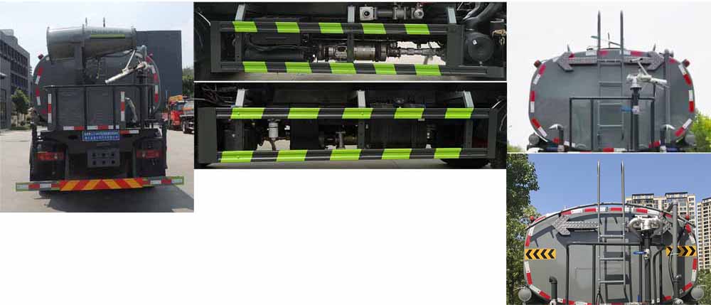 備注 | 罐體總容量:9.77立方米,罐體有效容積:9.3立方米;罐體外形尺寸(長×長軸×短軸)(mm):4200×2300×1450,4000×2300×1540;ABS型號/生產廠家:3631010-C2000/東科克諾爾商用車制動系統(十堰)有限公司,ABS 8/東科克諾爾商用車制動系統(十堰)有限公司,4460046450/威伯科汽車控制系統(中國)有限公司,J ABS/焦作博瑞克控制技術有限公司.隨底盤選裝駕駛室,選裝底盤附件位置,選裝噴霧裝置樣式;所用材料材質、連接方式以及后部防護裝置的主要尺寸參數(斷面尺寸和離地高度):側、后防護材料均為:Q235碳鋼,連接方式均為:螺栓連接,后部防護截面尺寸(mm):120×50,后部防護離地高度(mm):450;專用功能及裝置:該車主要用于城鄉園林綠化噴灑;主要裝置為水罐及噴灑裝置;選裝油箱和消聲器的安裝位置.選裝儲氣筒位置.選裝后部箭頭燈,選裝水炮支架安裝位置,選裝自動球閥安裝位置,選裝自動炮裝置樣式,前伸500mm,整車長度為8000,8300(mm)。 | ||