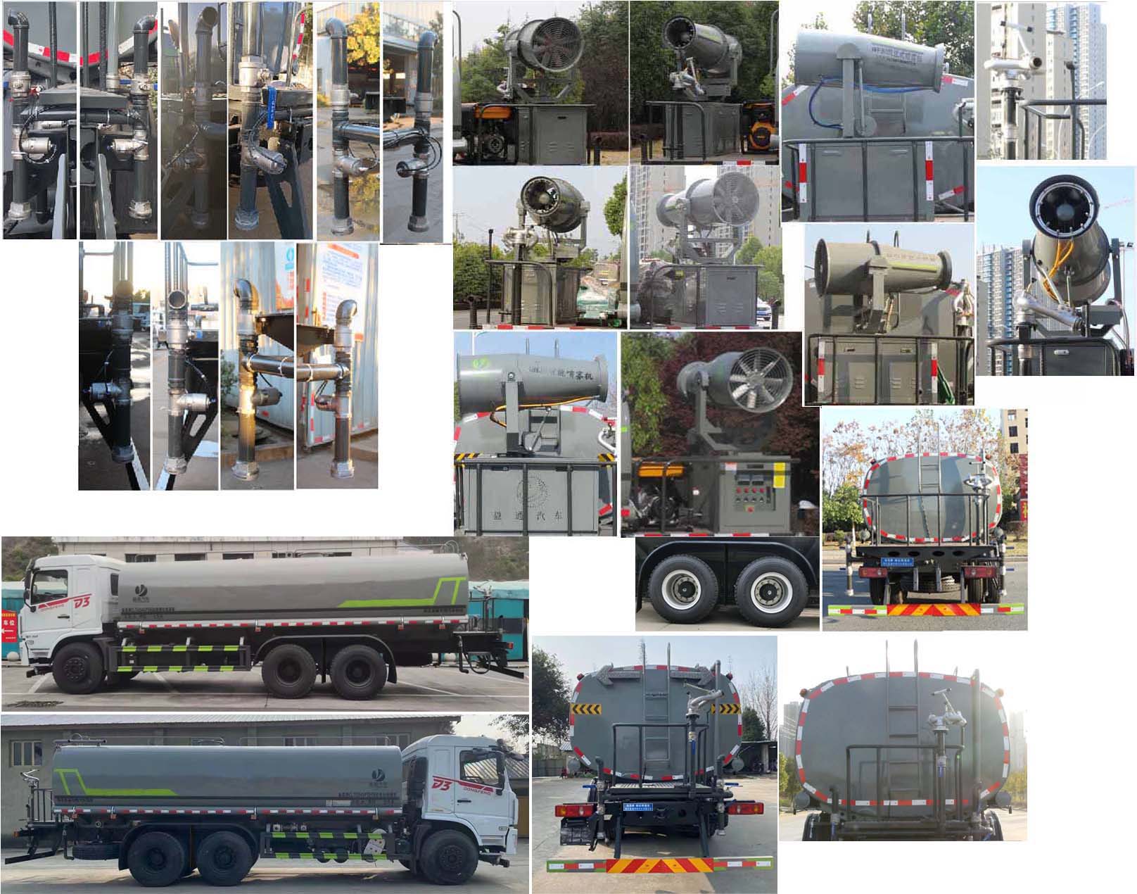 備注 | 該車主要用于城鄉園林綠化噴灑;主要裝置為罐體及噴灑裝置;隨底盤選裝駕駛室,選裝遮陽板上"東風商用車”字及不帶遮陽板,選裝噴霧裝置樣式,選裝油箱出口位置;罐體總容量:14.81立方米;罐體有效容積:14.11立方米;罐體外形尺寸(長×長軸×短軸)(mm):6800×2390×1620,6800×2400×1450;側、后防護材料均為:Q235,連接方式均為:螺栓連接,后部防護截面尺寸(mm):120×50,后部防護離地高度(mm):460;ABS型號/生產廠家:3631010-C2000/東科克諾爾商用車制動系統(十堰)有限公司.采用4350+1350(mm)軸距.選裝水炮支架安裝位置,選裝高位花灑管道樣式,選裝自動球閥安裝位置。選裝擋泥板樣式,選裝箭頭燈裝置,選裝后部樣式。后部作業燈僅在作業時開啟,車輛行駛過程中不可開啟. | ||