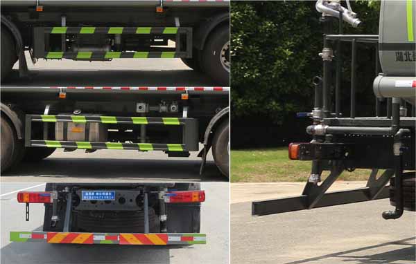 該車主要用于城鄉(xiāng)園林綠化噴灑;主要裝置為罐體及噴灑裝置;罐體總?cè)萘?16.07立方米,罐體有效容積:15.3立方米,罐體外形尺寸(長×長軸×短軸)(mm):6700×2400×1470;側(cè)、后防護(hù)材料均為:Q235碳鋼,連接方式均為:螺栓連接,后部防護(hù)截面尺寸(mm):120×50,后部防護(hù)離地高度(mm):480;ABS系統(tǒng)型號/生產(chǎn)企業(yè)對應(yīng)關(guān)系:CM4XL-4S/4M,廣州瑞立科密汽車電子股份有限公司.采用底盤2100+4200軸距(mm)。選裝后部箭頭燈,選裝后部弧形噴灑裝置,選裝噴灑裝置樣式,選裝水炮支架位置,選裝自動球閥安裝位置。隨底盤選裝駕駛室。