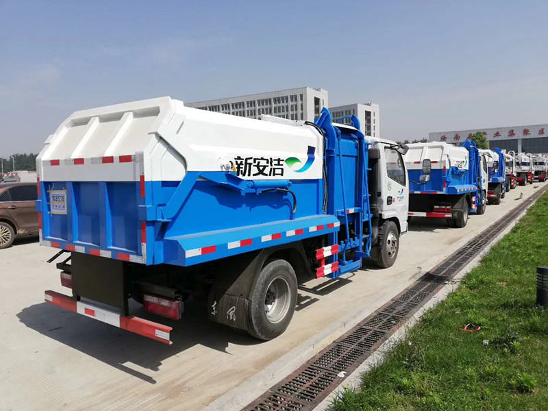 垃圾車防護材料:Q235B碳鋼,連接方式:左右側面防護與副梁均采用焊接連接,后下部防護與車架采用焊接連接,后部防護斷面尺寸(mm):150×50,后部防護離地高度(mm):390。2、垃圾車隨底盤選裝駕駛室,選裝掛鐵桶裝置。3、.發動機與油耗對應關系4B2-115C50對應油耗值:17.3;YC4FA115-50對應油耗值:17.4;CY4BK551對應油耗值:17.7;ZD30D13-5N對應油耗值17.9;4DW93-84E5對應油耗值:17.3;D28D11-5DA對應油耗值:17.3;YN27CRE1對應油耗值:17.3;YN33CRE1對應油耗值:17.3。4、ABS廠家及型號:襄陽東風隆誠機械有限責任公司/ABS/ASR-24V-4S/4M。5、專用裝置:掛桶機構,主要用于城鎮環衛桶裝生活垃圾的收集與運輸。6、車輛僅采用3308軸距。多利卡掛桶試垃圾車