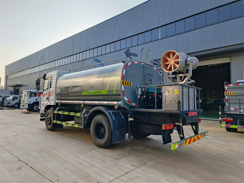 1、罐體約為 12 方, 2、邊燈帶電,罐體尾部上方標配 2 個紅色示寬燈, 3、標配前噴為鴨嘴直沖,標配后沖,用戶可根據自己的需求,來調 整對沖位置。 4、沖孔平臺(承載能力加強),炮筒后蓋為定制型螺栓卡扣, 5、前噴、后沖、后灑、側噴,綠化高炮開關球閥均采用 50 大通徑 不銹鋼球閥, 6、新式軸承式水炮,更加耐用, 7、60-90 型水泵, 8、防腐法蘭墊片, 9、鋁制后灑,不易炸開 10、罐體自動焊(美國林肯焊機及電源),拼板自動焊接,封頭環 縫焊接,無氣孔,焊縫美觀。 11、側護網、后保險杠、均為螺栓連接,方便拆卸,維修方便。 12、塑料擋泥板,替代鐵擋泥板,更加輕便,用螺栓連接,方便拆 卸。 13、前部、后部主管連接處為 6 孔圓法蘭,不易沖墊