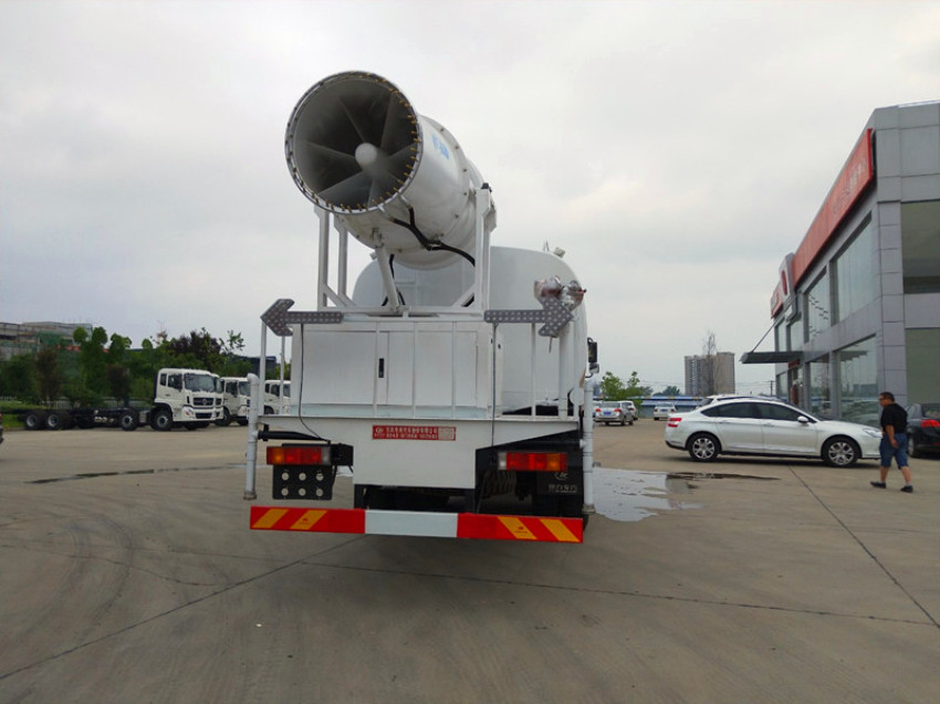 東風后雙橋多功能抑塵車罐體容積16立方米,上裝分為霧炮、機組、水罐罐體三大部分,依靠環保霧炮上高速運轉的風機風送原理,把罐體內的水經霧化風送到80米-100米遠的射程,噴霧抑塵,凈化空氣,同時具備灑水和道路沖洗功能。該車在滿足使用的安全性、可靠性、方便性等性能指標的同時,造型美觀、時尚、新穎,風筒及構件全部采用噴砂處理后噴涂兩道底漆和一道面漆,漆料采用國內知名防腐漆。功轉換效率高、射程遠、覆蓋面積大、霧粒細小且均勻、抑塵效果好。水霧與飄在空中的塵埃接觸時,被塵埃所吸附,加大塵埃的比重,抑制塵埃在空氣中的流動,并加速塵埃沉降,實現對空氣的凈化。