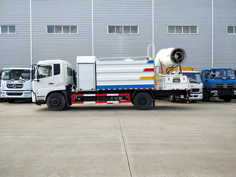 該車裝備有風送式噴霧機專用裝置,主要用于城市街道除塵,工礦企業抑塵,除霾降塵等作業。2.整車長/前懸/后伸(mm)對應關系:9000/1430/0,9070/1500/0,10050/1430/1050,10120/1500/1050。選裝噴霧機。僅用5100mm軸距。側,后防護裝置材料材質:Q235,連接方式焊接加螺栓連接,后部防護裝置斷面尺寸(寬×高)60×120(mm),后部防護離地高度450mm。ABS的型號可以為1.ABS-E 4S/4M,生產廠為威伯科汽車控制系統(中國)有限公司;2.3631010-C2000,生產廠為東科克諾爾商用車制動系統(十堰)有限公司。隨底盤選裝氣瓶布置位置。
