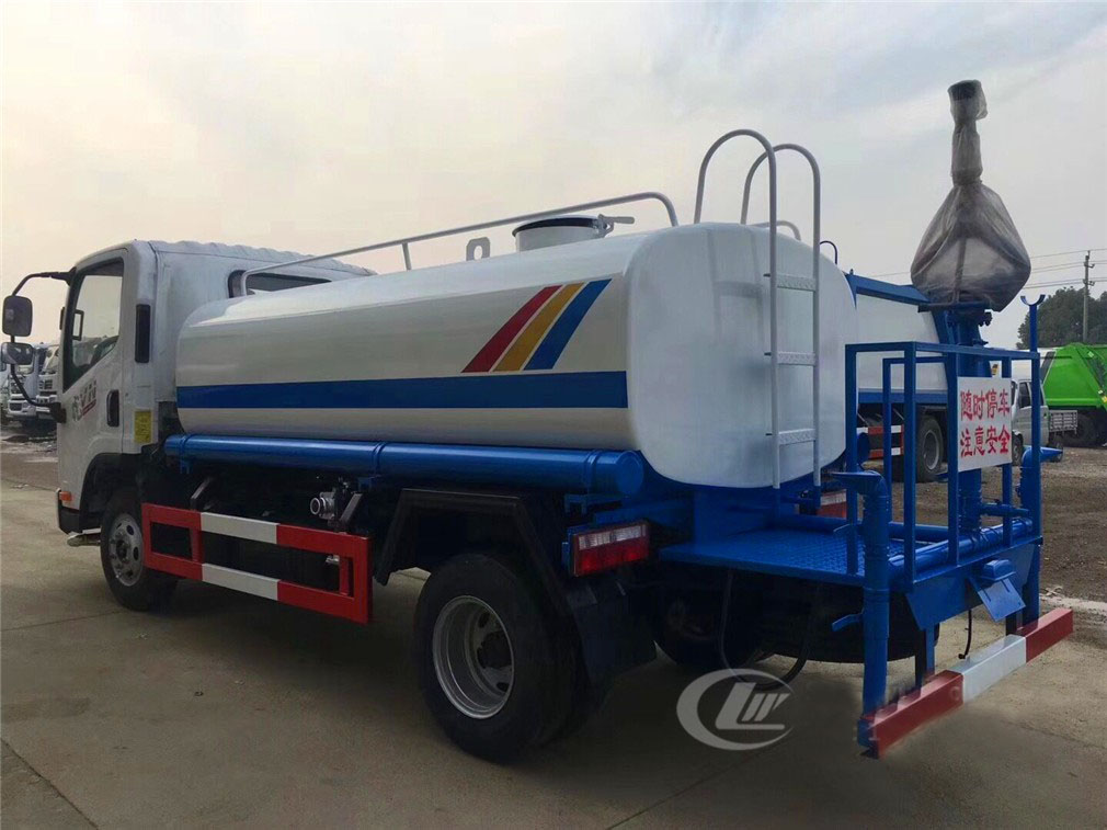灑水車上裝配置:罐體采用4毫米厚武鋼產容積板焊接而成,內設防浪板,程力大功率灑水泵,可自吸水,加壓排水,前沖15米寬,后灑壓塵,側噴花灑噴頭,尾高綠化高位水炮,射程28米,可調節水柱、大中雨、毛毛雨等,可做臨時消防滅火用。