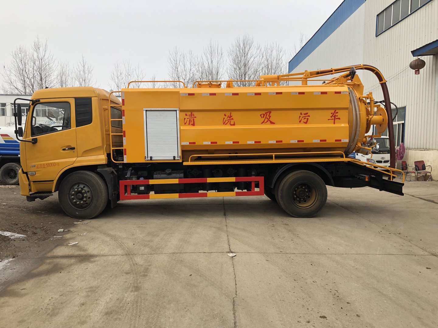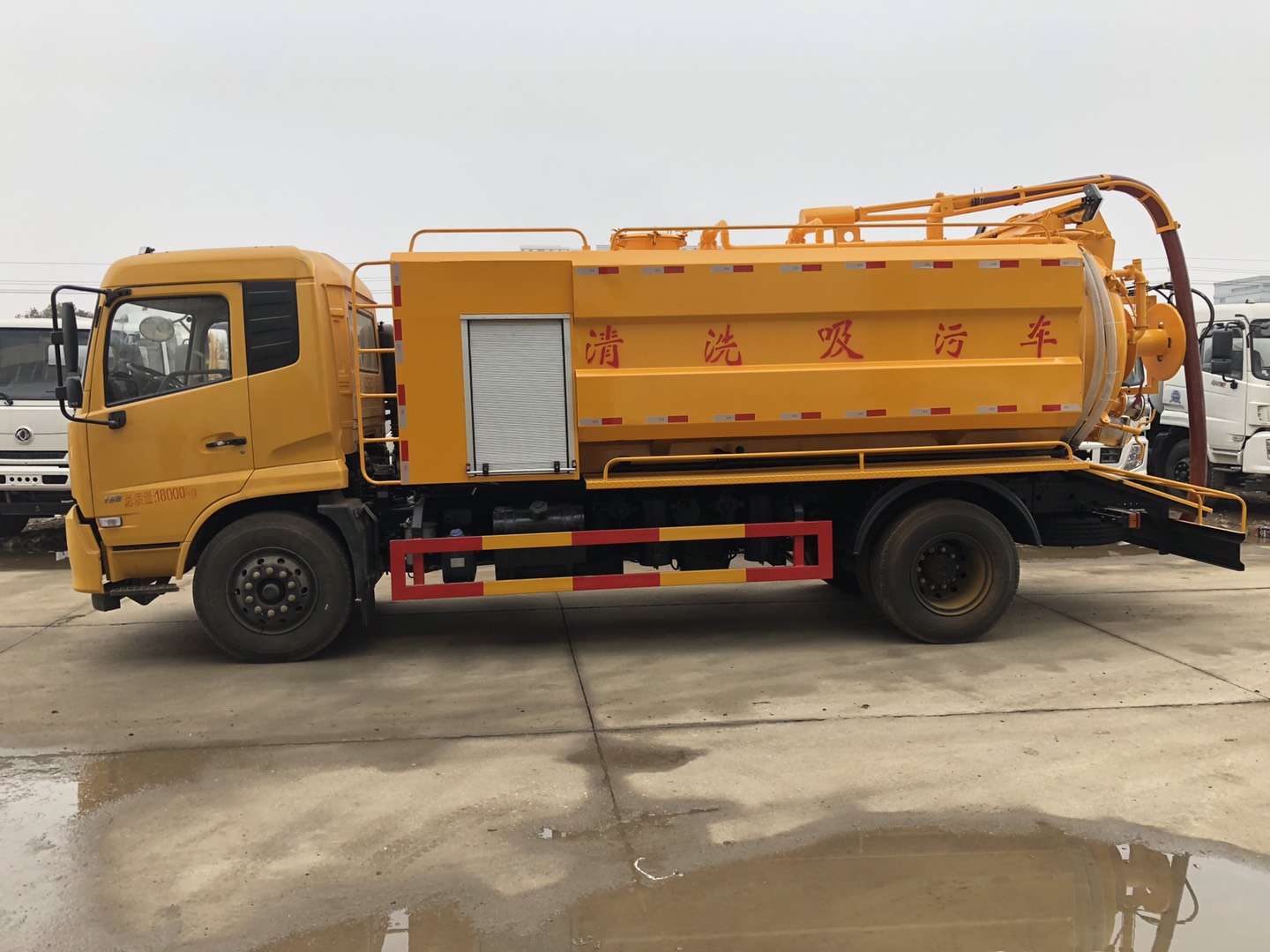 罐體容積9立方,采用武鋼優(yōu)質(zhì)鋼板制作(6個(gè)厚)采用意大利中冷型真空泵,罐體上部帶液壓吸污吊桿(可360度旋轉(zhuǎn),遙控控制)配備一根10米吸污管,尾部一個(gè)150排污球閥,帶一個(gè)100的自流口,水箱容積4立方,配備德國(guó)品孚215L高壓泵,22兆帕,帶60米19號(hào)高壓管,帶10個(gè)組合噴頭,罐體可以液壓舉升,后大蓋可開(kāi)啟,帶4個(gè)鎖緊裝置,帶箭頭燈,LED夜間作業(yè)燈,其他標(biāo)配。
