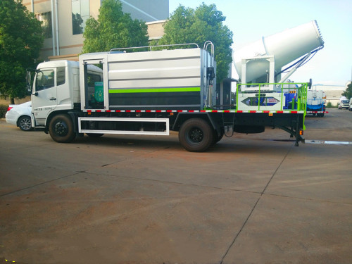仰俯角度 -10°—90° 旋轉(zhuǎn)角度 360°往返可調(diào) ,射程80米-120米,可連續(xù)工作4小時以上,細化水霧,達到降塵降溫效果,除噴霧以外,該車還具備常規(guī)灑水車的使用功能,如前沖后灑和尾部高壓水炮,多功能抑塵車高壓水泵噴出的水霧射程可達100米。