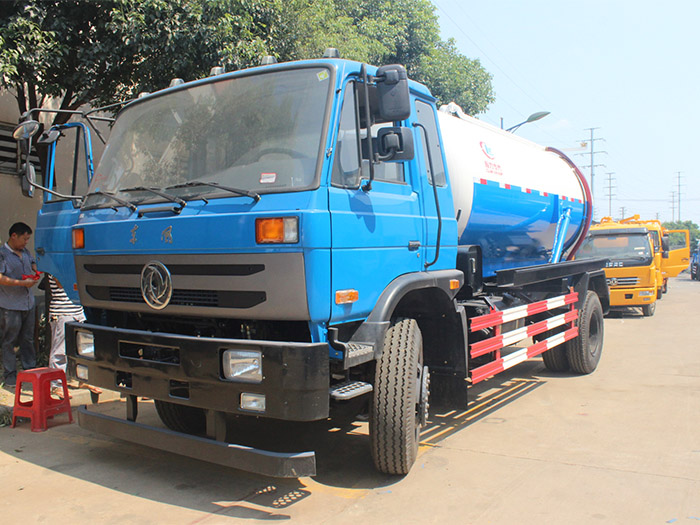 底盤配置:出玉柴160馬力發動機,東風145新款駕駛室,3950軸距,前橋2.8噸后橋7.65噸,5檔帶副變速,9.00輪胎, ABS東風御虎10噸吸污車整車說明: