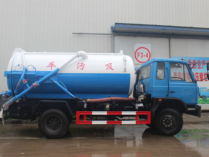 吸污車專用部分由取力器、傳動軸、真空吸污泵、壓力罐體、液壓部分,管網系統、真空壓力表、視糞窗、洗手裝置等組成,隨車配置大功率真空吸污泵和優質液壓系統,罐體封頭一次壓鑄成型、罐體可后開、雙頂自卸。罐內污物可通過后蓋直接傾倒,具有真空度高(比吸糞車的吸力更大)、噸位大、效率高、用途更廣泛的特點。