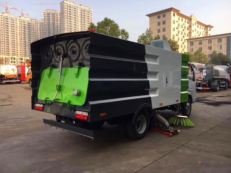 2、掃路車采用吸掃結(jié)合的方式收集垃圾,濕式除塵、電液控制,液壓傾翻卸料的作業(yè)方式對路面進行清掃作業(yè)。