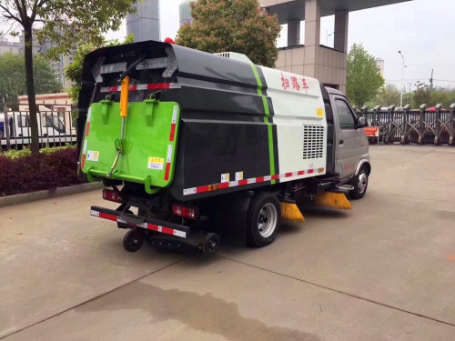 1.采用“中置四掃盤+后置吸嘴”對稱結構布置形式,方便道路左右兩邊路沿清掃,增大了清掃面積,清掃垃圾更集中。