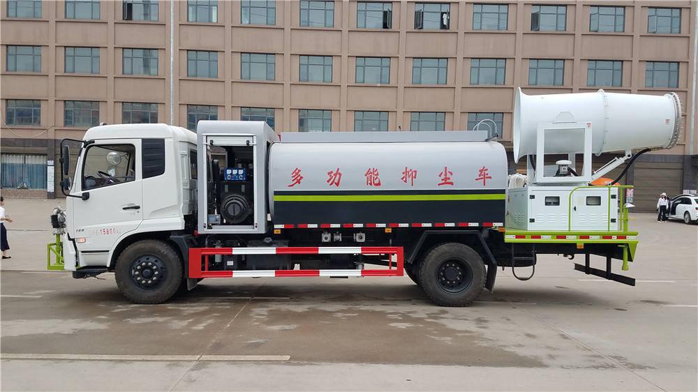 噴霧降塵車主要采用東風底盤研發改裝,上裝分為霧炮、機組、水罐罐體三大部分,依靠環保霧炮上高速運轉的風機風送原理,把罐體內的水霧化風送到60-160米遠的射程,適合風沙抑塵、工地降塵、拆遷降塵,專門用于城市開發區建設工地、拆遷工地、車站儲煤場、洗煤廠、焦化廠、鐵礦、鋼廠、港口等的揚塵風沙控制。