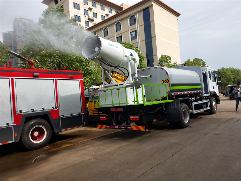 該車用于噴灑路面,起除塵和降溫作用的罐式專用作業汽車;罐體有效容積:10.8立方米,運輸介質:水,密度:1000千克/立方米;罐體外形尺寸(長×寬×高)(mm)為:5000×2200×1460,整車長(mm)/前懸(mm)/軸距(mm)/后懸(mm)對應關系為:8430/1430/4700/2300,8400/1400/4700/2300;8430/1430/4500/2500,8400/1400/4500/2500;隨底盤選裝駕駛室;側防,后防采用Q235材質螺栓連接在大梁上,后防護截面尺寸(mm):140×50,離地高度(mm):450;ABS型號/生產廠家:3631010-C2000/東科克諾爾商用車制動系統(十堰)有限公司,ABS 8/東科克諾爾商用車制動系統(十堰)有限公司, 4460046450/威伯科汽車控制系統(中國)有限公司;在不影響專用性能情況下選裝前沖樣式和花灑等灑水裝置,選裝不同外觀.