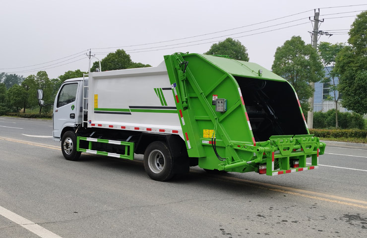 6. 方便的操作控制,作業(yè)控制盒分別安裝在駕駛室內(nèi)和車尾左右,駕駛室內(nèi)的作業(yè)控制盒可控制推擠卸料和選擇操作模式(如自動(dòng)或手動(dòng)),車尾的作業(yè)控制盒則控制壓填機(jī)構(gòu)和翻桶機(jī)構(gòu)的作業(yè),使用操作十分方便。特別是在垃圾填埋場(chǎng),作業(yè)人員無須下車即可完成卸料和污水排放