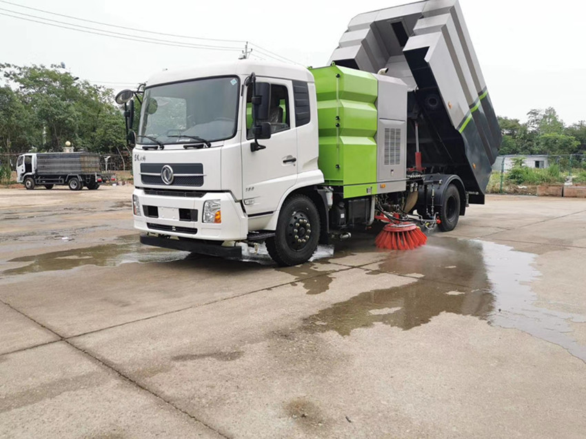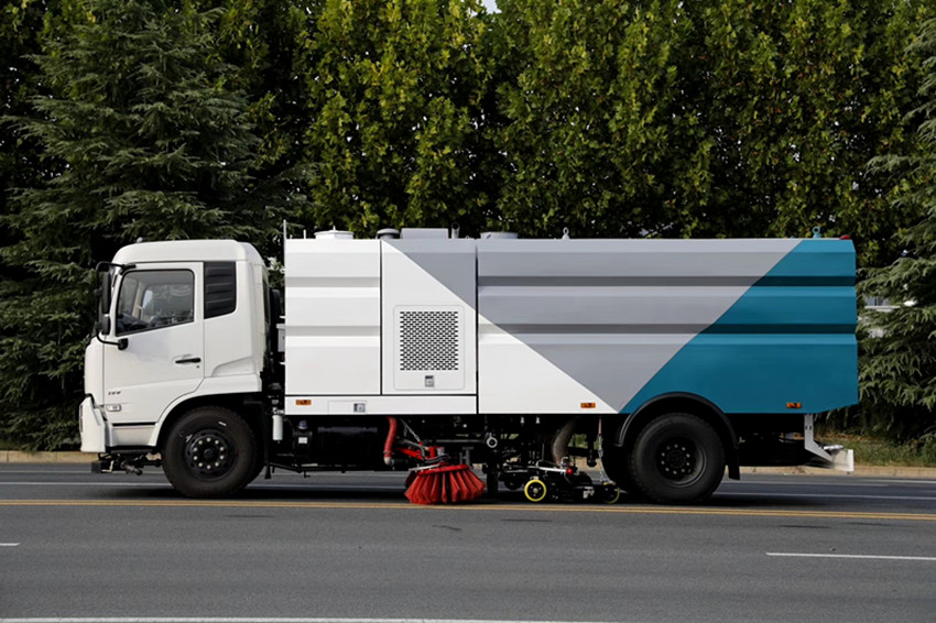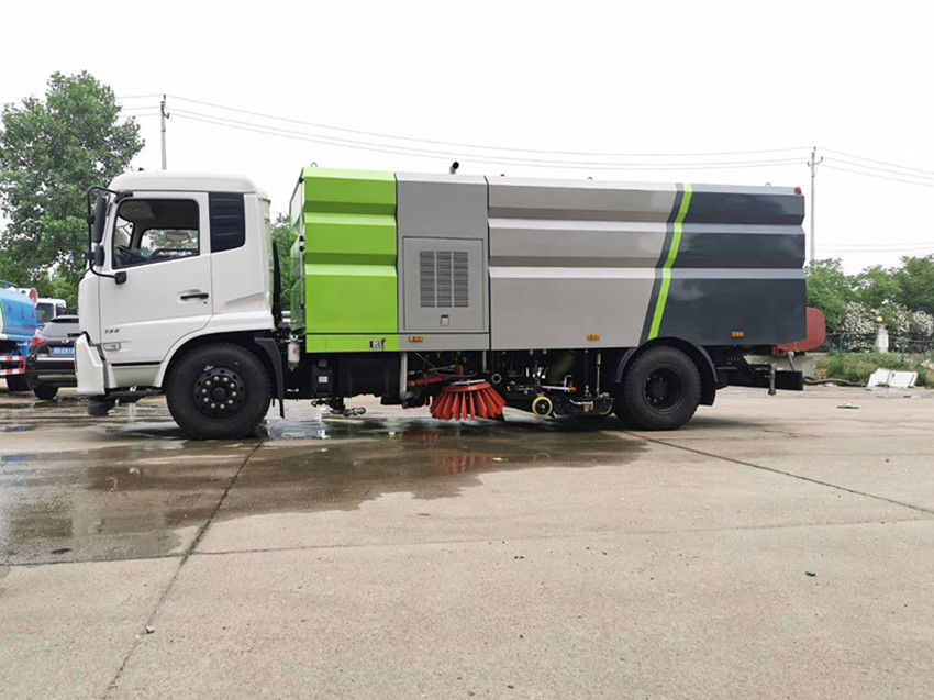 8)采用先掃,后沖刷,再吸收的工作方式,能將垃圾及污水一次清掃、沖刷、吸收干凈。路面作業后無塵土,無積水;