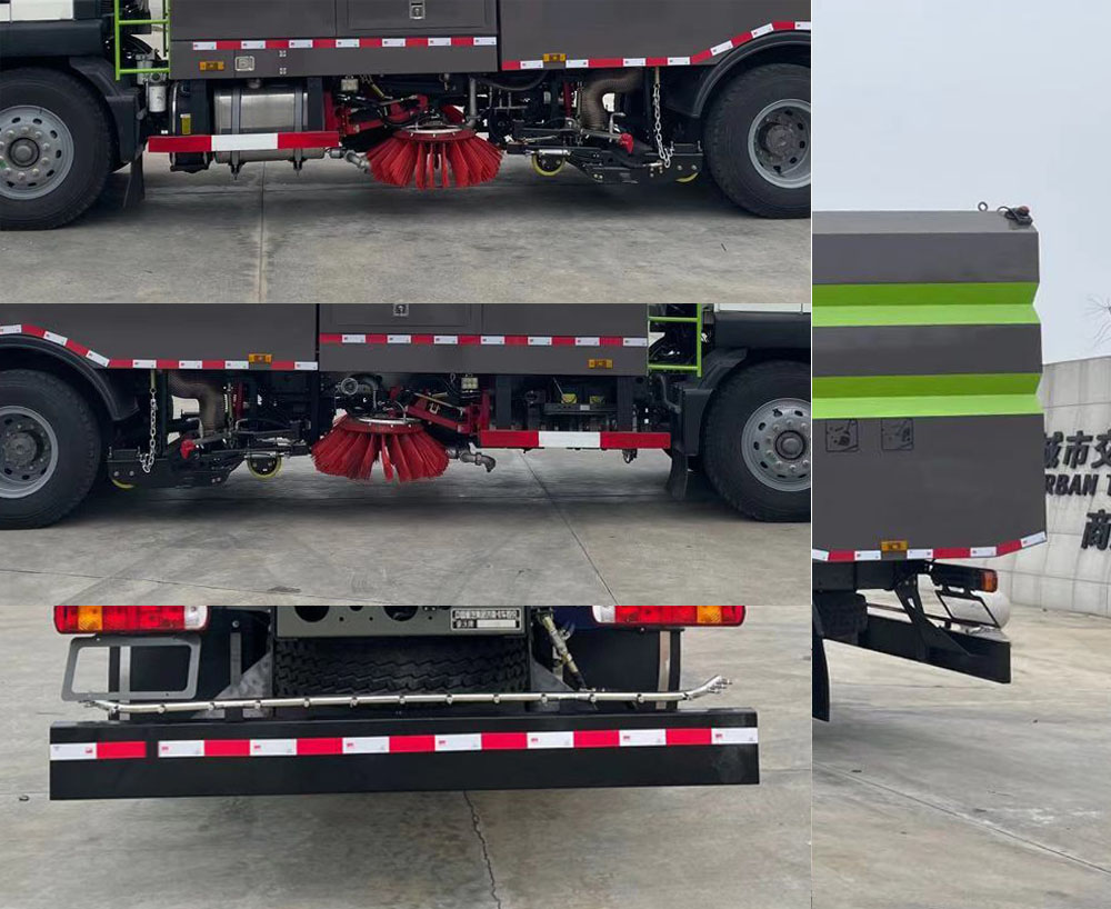 該車主要用于道路清掃,主要專用裝置為箱體和清掃裝置總成。僅采用軸距(mm):5000。 側后防護材質均為Q235,螺栓連接,后防護截面尺寸為(mm):150×50,下邊緣離地高:450mm。 ABS型號/生產企業:4460046300/威伯科汽車控制系統(中國)有限公司。選裝EBS,EBS系統控制器型號/ 生產企業為:EBS3/威伯科(上海)管理有限公司。選裝普通駕駛室,可不選裝遮陽罩,可不選裝玻璃后風窗。 |