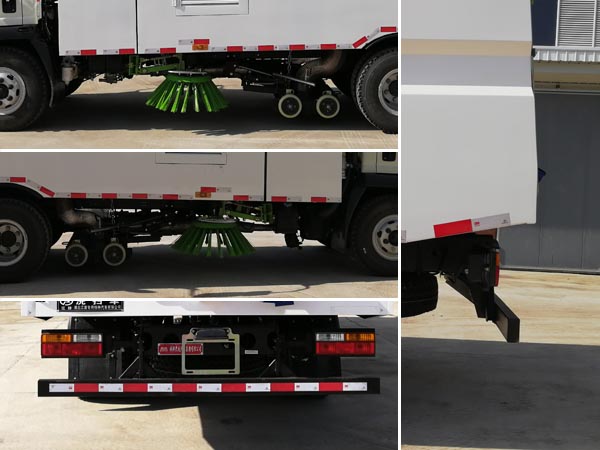 隨底盤選裝駕駛室;僅采用底盤3900mm軸距;側防護裝置與專用作業裝置干涉,無法安裝; 后下部防護裝置材料材質:Q235,連接方式:焊接加螺栓連接;后下部防護裝置斷面尺寸(寬×高):50×100(mm), 離地高度:490mm;ABS生產廠家:威伯科汽車控制系統(中國)有限公司,型號:ABS-E4S/4M; 浙江萬安科技股份有限公司,型號:VIEABS-II;廣州瑞立科密汽車電子股份有限公司,型號: CM4XL-4S/4M;主要專用裝置為箱體,清掃裝置,用于路面清掃作業. |