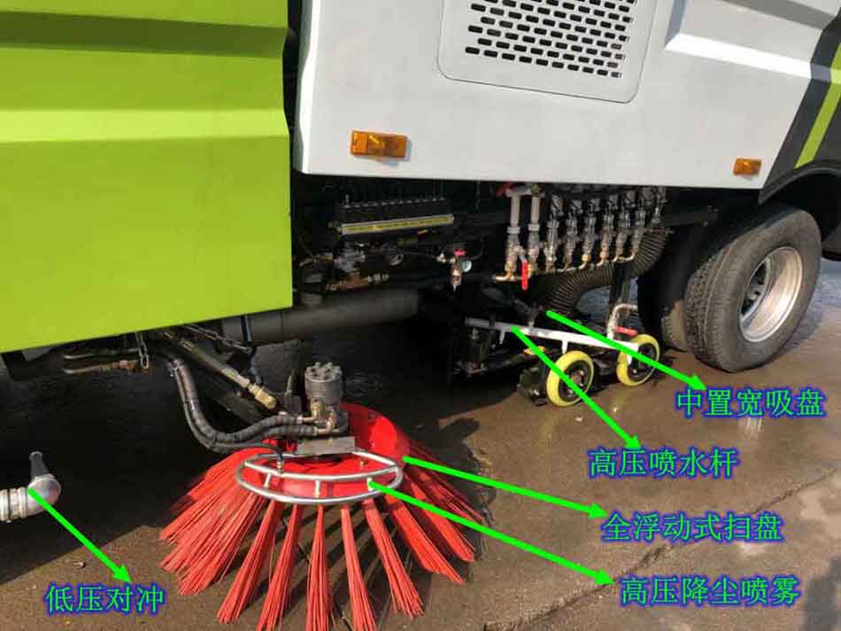 東風D9洗掃車上裝配置:帶不銹鋼箱體,容積為9立方,帶2個中置掃盤,康明斯170馬力副發動機;意大利馬達;德國高壓水泵(前沖/側噴/中噴/后噴霧/沖洗水槍/垃圾箱自潔裝置);萬向高壓路沿清洗噴頭,威龍低壓泵(前沖);不銹鋼垃圾箱;不銹鋼管高壓管路;德國控制器;韓國控制箱;PLC一鍵控制;尾部LED箭頭燈;機油、垃圾箱、水箱均帶防溢低水位報警裝置;倒車及洗掃狀態室內監視器。18m高壓沖洗卷盤。清掃寬度3.5m;清洗壓力10MPa;吸入粒度φ110mm。