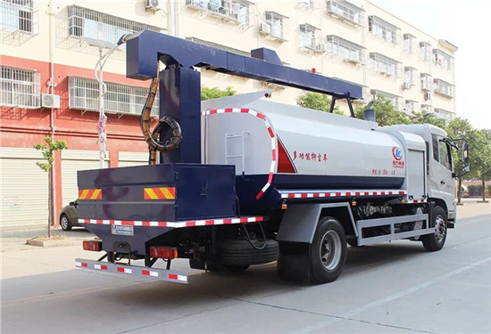 罐體為10立方圓形罐,罐體內(nèi)部做防腐,前沖、后灑、側(cè)噴、高炮,抑塵噴灑桿(帶旋轉(zhuǎn)伸縮功能)。噴灑桿離地3.5-4.5米 ,后部平臺(tái)帶8KW副發(fā)電機(jī)組,罐體內(nèi)部加兩個(gè)1.5KW電動(dòng)馬達(dá)(帶攪拌功能)罐體噴漆上白下藍(lán),平臺(tái)和噴灑桿藍(lán)色。遙控操作噴灑桿上下左右旋轉(zhuǎn),平臺(tái)較上一臺(tái)車左右加寬20CM,電控箱安裝在后部平臺(tái)。