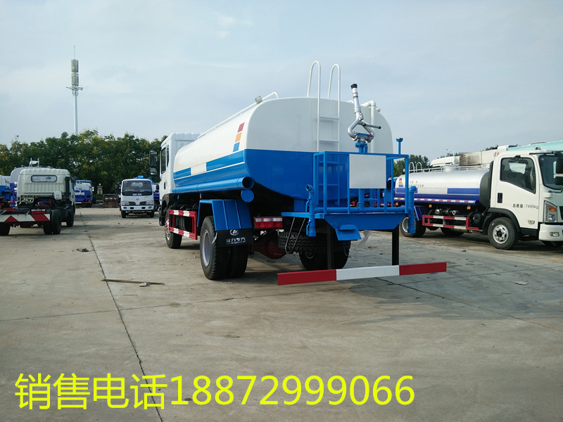 東風D9灑水車(12噸)罐體用4MM碳鋼板制作,罐內隔板具有防波作用,整車帶一個專用灑水泵(垂直最大吸程6米),灑水寬度14米,射程28,配備2個前沖、2個后灑、2個側噴、帶1個后工作平臺,平臺上安裝1個綠化灑水高炮(灑水炮可全方位旋轉,可連續調成直沖狀、大雨、小雨、毛毛雨,霧狀可調節沖洗高大樹木),引水時間<5min,流量90m3/h。帶1個消防接頭,帶1個自流閥,1個過濾裝置、人性化爬梯及側防護欄,安裝灑水音樂喇叭。