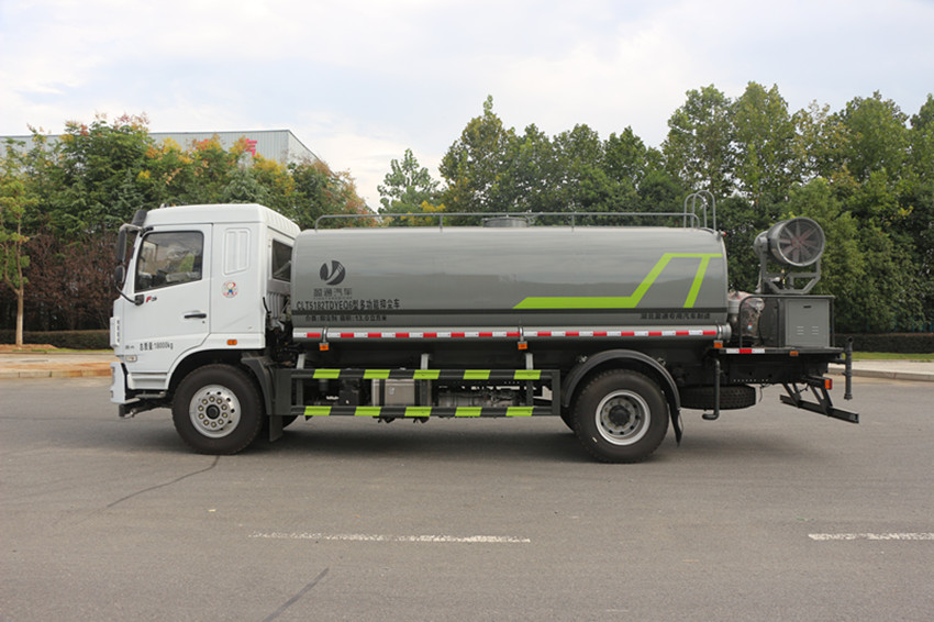 罐體采用標準Q235碳鋼制作,罐體自動焊,配大功率專用灑水車,可自吸自排,前沖后灑,側噴,高位花灑,主管道加粗,大通徑球閥,直通球閥式消防接口,帶后工作平臺,沖孔平臺,帶高炮。(可選裝大平臺,可裝30米-40米噴霧機,容積不變,重量不超)。環保,免征齊全。