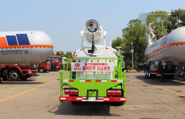 5方灑水車上裝配置:罐體容積5噸,方圓形罐體,罐體鋼板采用Q235碳鋼鋼材,整車具備灑水車的一切功能(前沖、后灑、側噴、平臺高炮),標配億豐40/50水泵,自流閥及消防接頭各1個、水管2根。后平臺安裝一臺30米霧炮。