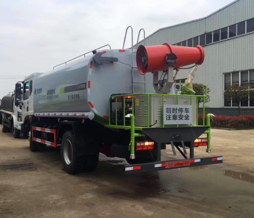 抑塵車的出產,是在灑水車基礎上的一款升級產品,集綠化灑水、路面沖洗、噴藥殺蟲、應急消防于一身的多功能車型,實現一車多用,又稱為霧炮車、多功能噴灑車、園林綠化噴灑車、園林噴藥車等名稱。具有灑水、壓塵、高、低位噴灑,農藥噴灑、護欄沖洗等功能,還具有運水、排水,應急消防等功能。噴霧灑水車是大型社區、工礦企業、園林綠化、城市環衛的理想用車