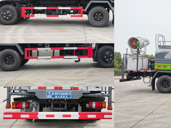 1、罐體有效容積:3.85立方米,罐體尺寸(長×長軸×短軸)為(mm): 3200×1600×1090 。 2、左右側面防護為螺栓連接,后部防護連接方式為:焊接加螺栓連接,防護材料均為Q235B碳鋼, 后部防護斷面尺寸(mm):120×60,離地高度(mm):480。3、ABS系統型號/廠家為:VIE ABS-II/ 浙江萬安科技股份有限公司。4、專用裝置:罐體,主要用于灑水及園林綠化。5、隨底盤選裝駕駛室。 |