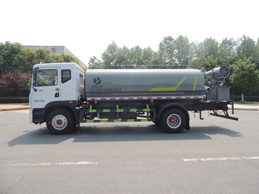 性能簡介:吸程≧7米,灑水寬度≧14-16米,射程≧25-40米,引水時間<5min,流量60m3/h。前沖(噴)、后灑、帶側噴(花灑)、帶后工作平臺、平臺上安裝綠化灑水高炮(炮噴射形狀可調節:直沖、大雨、中雨、毛毛雨、霧狀、可連續調節,360°旋轉),配消防接口,自流閥,濾網,帶自吸自排功能。安裝30-80米霧炮,霧炮可以遙控操作,可以手動操作,按霧炮大小配多大功率發電機