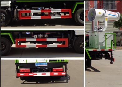專用裝置為抑塵霧炮,用于城市抑塵.整車長/軸距/后懸對應關系為(mm):5995/3360/1482;5485/2850/1482;